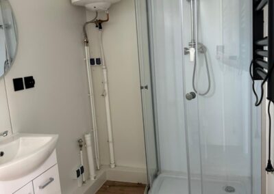 • Ruime badkamer met douche / wc / wasbak en alle aansluitingen wasser / droger