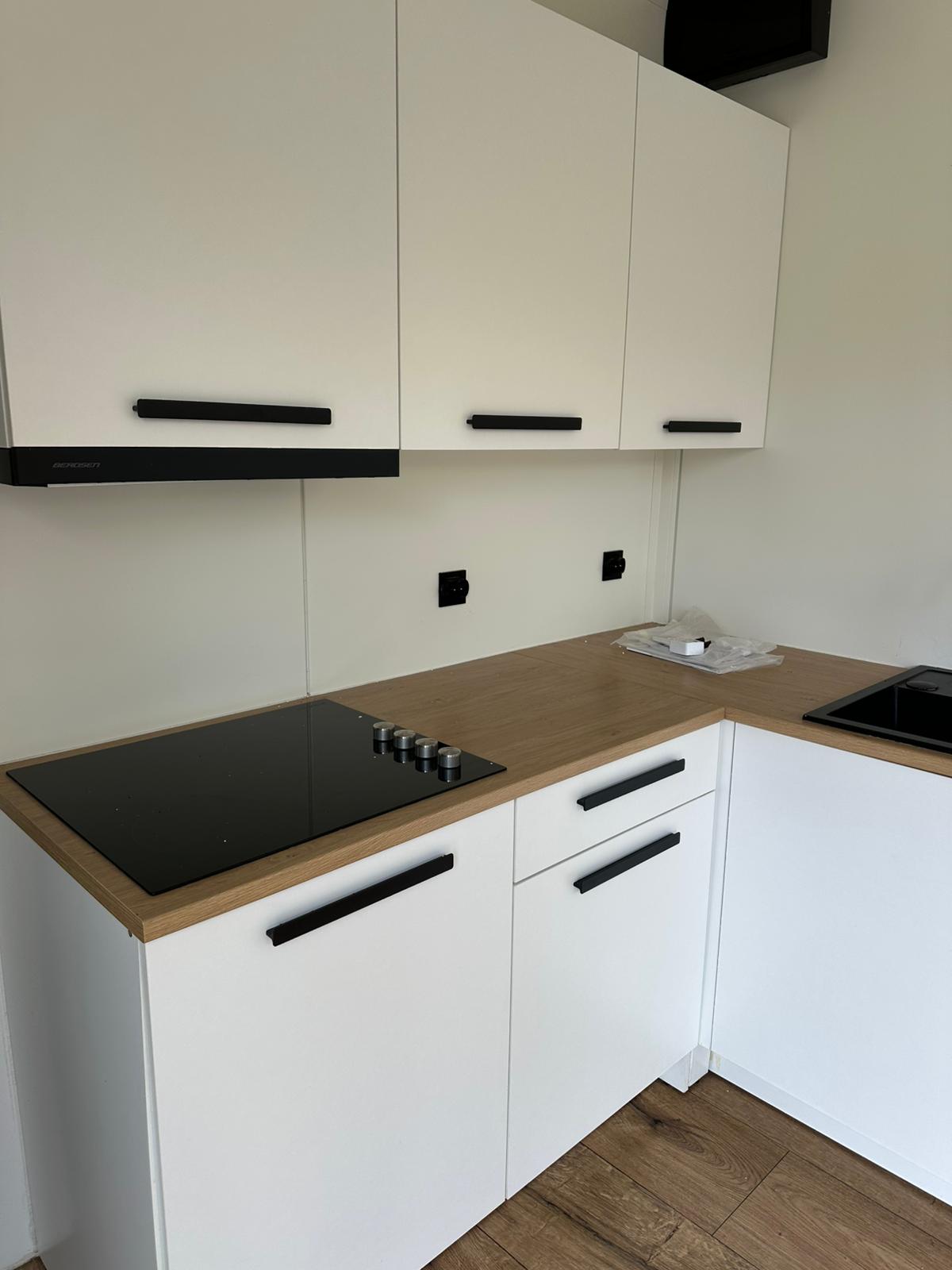 • Keuken met koelkast / vriezer / kookplaat (keramisch) en spoelbak